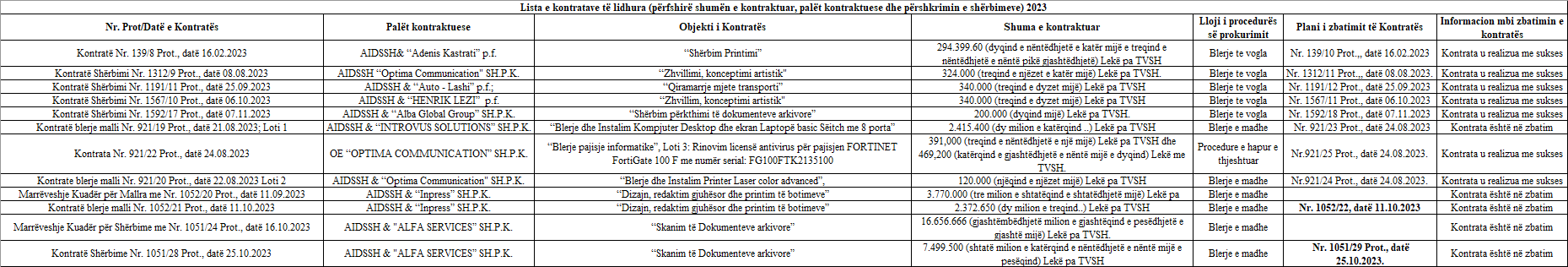 Mekanizmat kontrollues dhe monitorues që veprojnë mbi AIDSSH | Informacion mbi buxhetin dhe të dhënat financiare të AIDSSH | Informacion për procedurat e prokurimit/procedurat konkurruese të koncesionit/partneritetit publik privat |