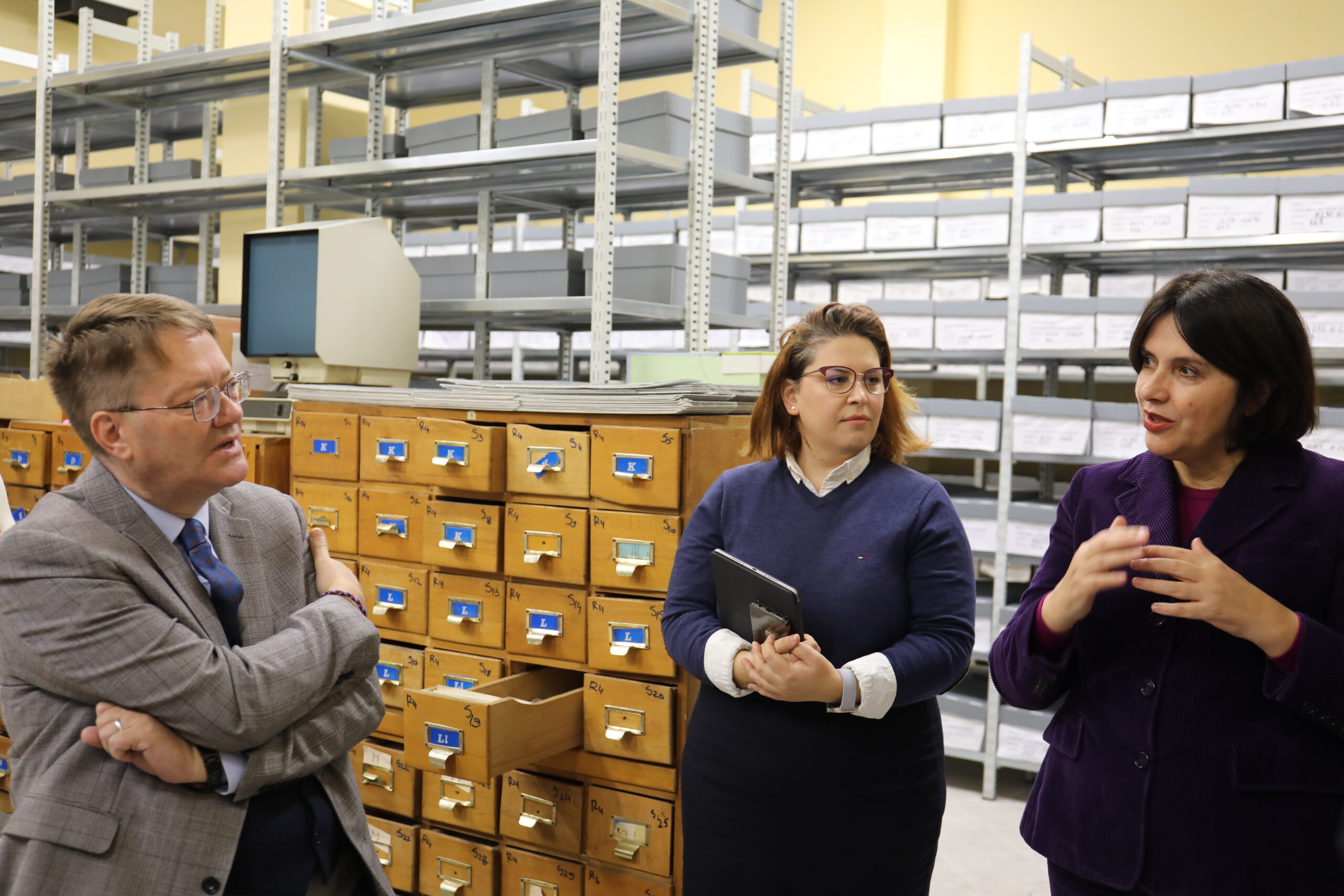 Ambasadori Abbott pati mundësinë të vizitonte arkivin ku ruhen dokumentet historike dhe të njihej me platformën digjitale “Mësojmë nga e kaluara – me burime parësore 1944-1991.” Kjo platformë e-learning, e krijuar posaçërisht për mësuesit e sistemit arsimor parauniversitar, ofron burime autentike për periudhën e regjimit komunist në Shqipëri dhe synon të pasurojë njohuritë historike të nxënësve.